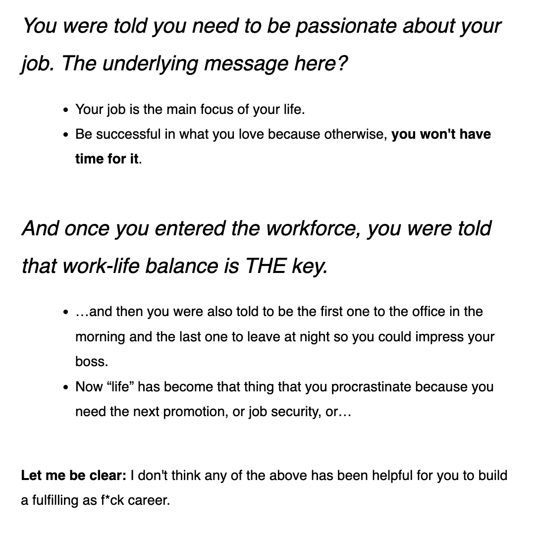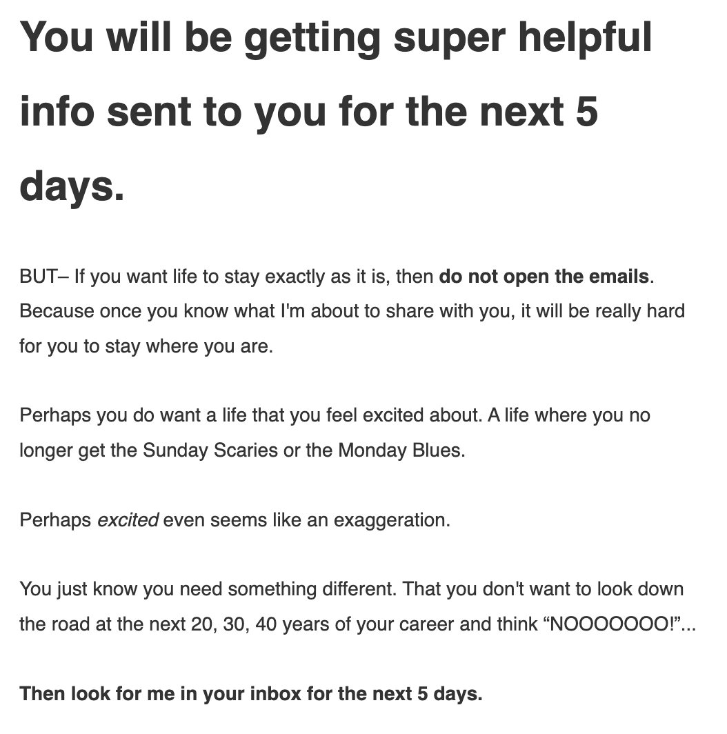 Educate new subscribers about the anti-career shift and what they can expect from us in future emails.