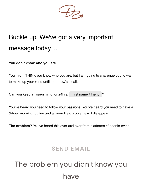 Concise language that identifies the problem and creates anticipation for future emails to come